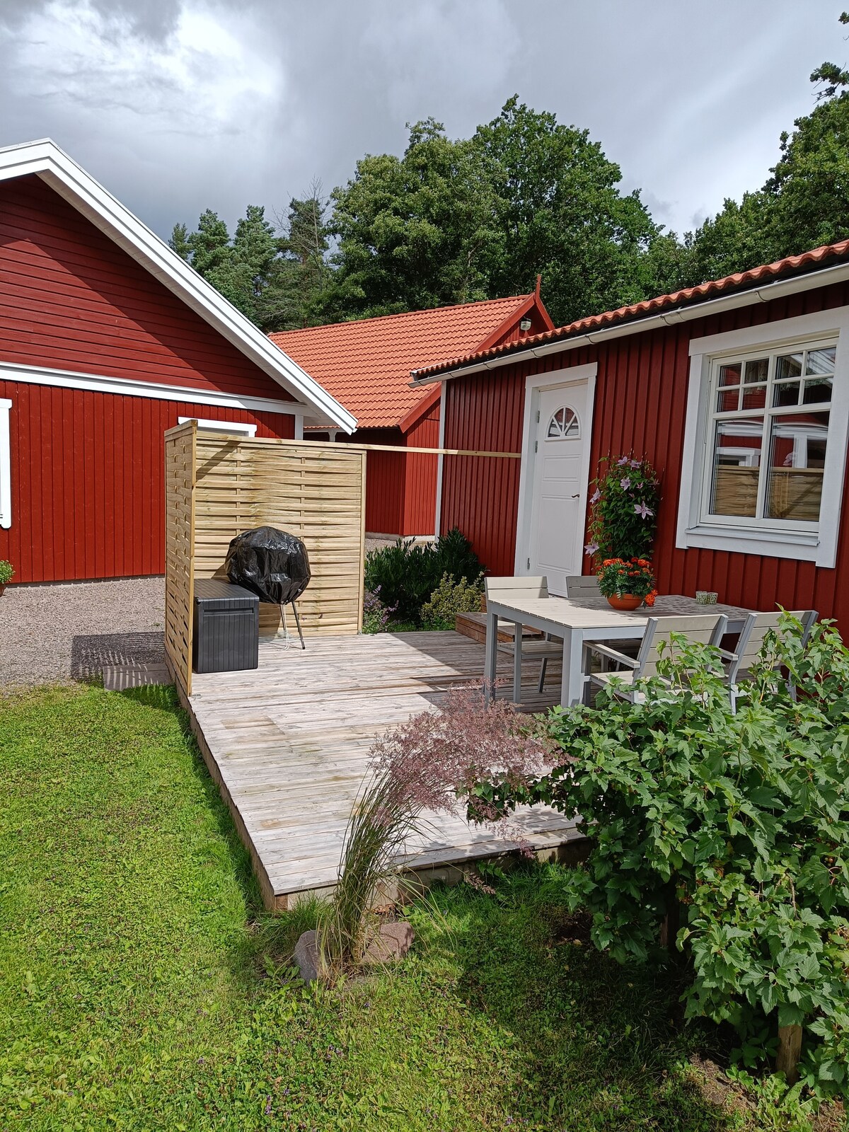 Nybygd hytte i fredelige omgivelser, inngjerdet tomt. Ligger på baksiden av huset vårt. Sengetøy og håndklær er inkludert. I huset er det en dobbeltseng, en køyeseng (én person) og en sovesofa (én person, maks to små). Kjøkkenkrok med komfyr, kjøleskap, fryser, mikrobølgeovn, kaffetrakter, klimaanlegg og grill. Huset ligger i nærheten av Vänern, Läckö slott, Spikens fiskeområde, sykkel- og turstier. Merk: Rengjøring er ikke inkludert.