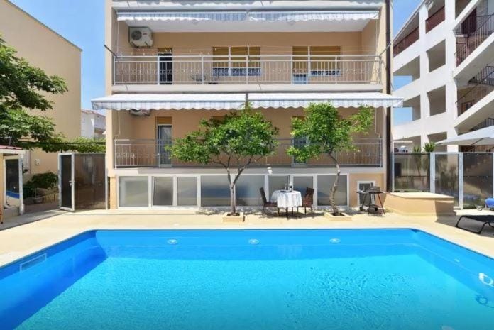 Den moderne møblerte leiligheten har et rom med separat klimaanlegg, TV og moderne belysning. Kjøkkenet er utstyrt med oppvaskmaskin, keramikkplate, mikrobølgeovn og alt utstyret. Stuen har sofaer for en tredje person og TV og klimaanlegg. Leiligheten har en vakker terrasse med utsikt over havet, antikkens salong og Split. Gjester kan bruke svømmebassenget og grillen vår i hagen.