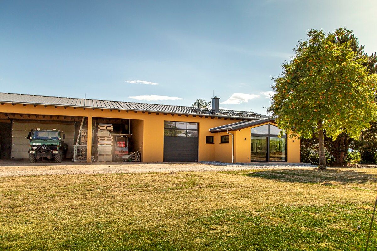 Ta en ferie i den luksuriøse atmosfæren i vårt gjestehus. Det er en del av vår vingård og integrert i vår gårdsbygning. Nærmeste nabo er ca. 100 m unna. Den 4 hektar store gården ligger idyllisk til midt blant vinmarkene, og er tilgjengelig fra to sider på bakkenivå. Du kan starte turer eller sykkelturer direkte fra gården. Kjøkkenet er fullt utstyrt for selvbetjening, inkludert vinkjøleskap. Bierpong-folk, ikke bestill!