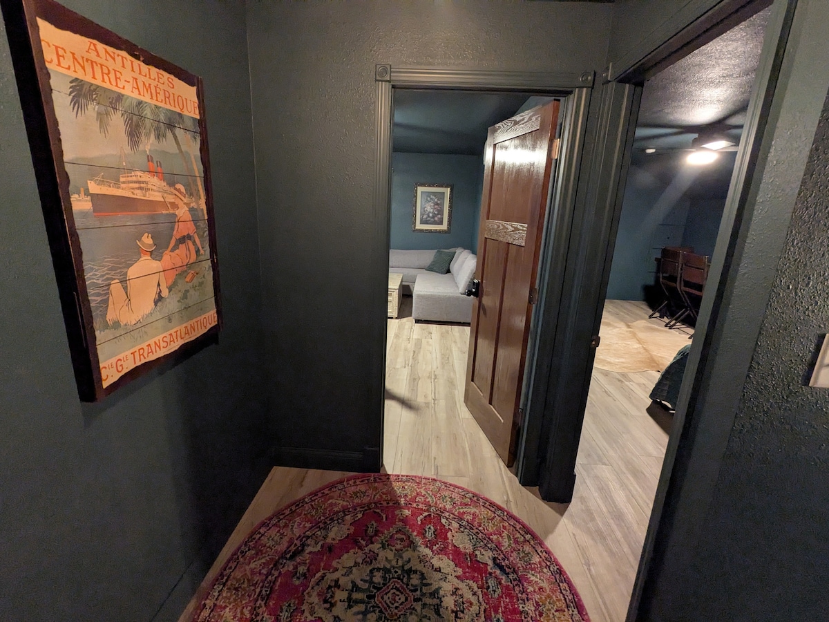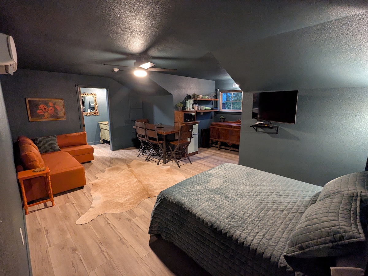 Len deg tilbake og slapp av på dette rolige, sjarmerende, stilige stedet. Loloi-teppet inviterer deg inn, og Roku TV vil at du skal bli en stund! Den ligger også sentralt ved 54 Hwy i El Dorado Springs. Med en ny smart-TV med flatskjerm og en elektrisk peis, koselig sengetøy og en toppmadrass i bambus, kommer du til å elske dette stedet! Sikret personlig inngang og privat bad med alle nødvendigheter. Kjøleskap, mikrobølgeovn, brødrister, kaffekanne og til og med vinglass for å fullføre oppholdet ditt. Ikke gå glipp av det. Bestill nå!