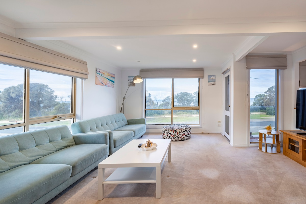Velkommen til din perfekte parferie! Denne stilige og koselige leiligheten ligger rett overfor stranden, og tilbyr fantastisk utsikt over vannet. Beliggende i hjertet av byen, i nærheten av sjarmerende kafeer, butikker og St. Leonards Pub. Bare en kort kjøretur til mange av Bellarines berømte vingårder. Nyt en morgenkaffe eller et glass vin på den private balkongen med utsikt over bukten. Kom og slapp av, få kontakt igjen og opplev det beste av livet ved vannet! Bestill i dag og la buktbrisen sette stemningen!