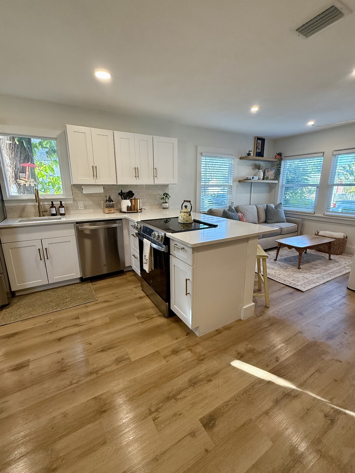 Ditt hjem hjemmefra i St. Pete! Bungalowen vår ligger i et svært attraktivt nabolag bare en mile fra det pulserende sentrum. Fullt renovert. 1930-tallets sjarm er der fortsatt, men med et moderne, fullt utstyrt kjøkken, et stilig bad, møbler/innredning og en privat terrasse. Oppusset tregulv også. Funksjonene inkluderer: Oppkjørsel for 1 bil. Soverom med kingsize-seng. Queensize sovesofa. 2 smart-TV-er: live- og strømmeapper Veranda med gyngestoler. Terrasse med uteservering. vaskemaskin og tørketrommel Erfarne verter.