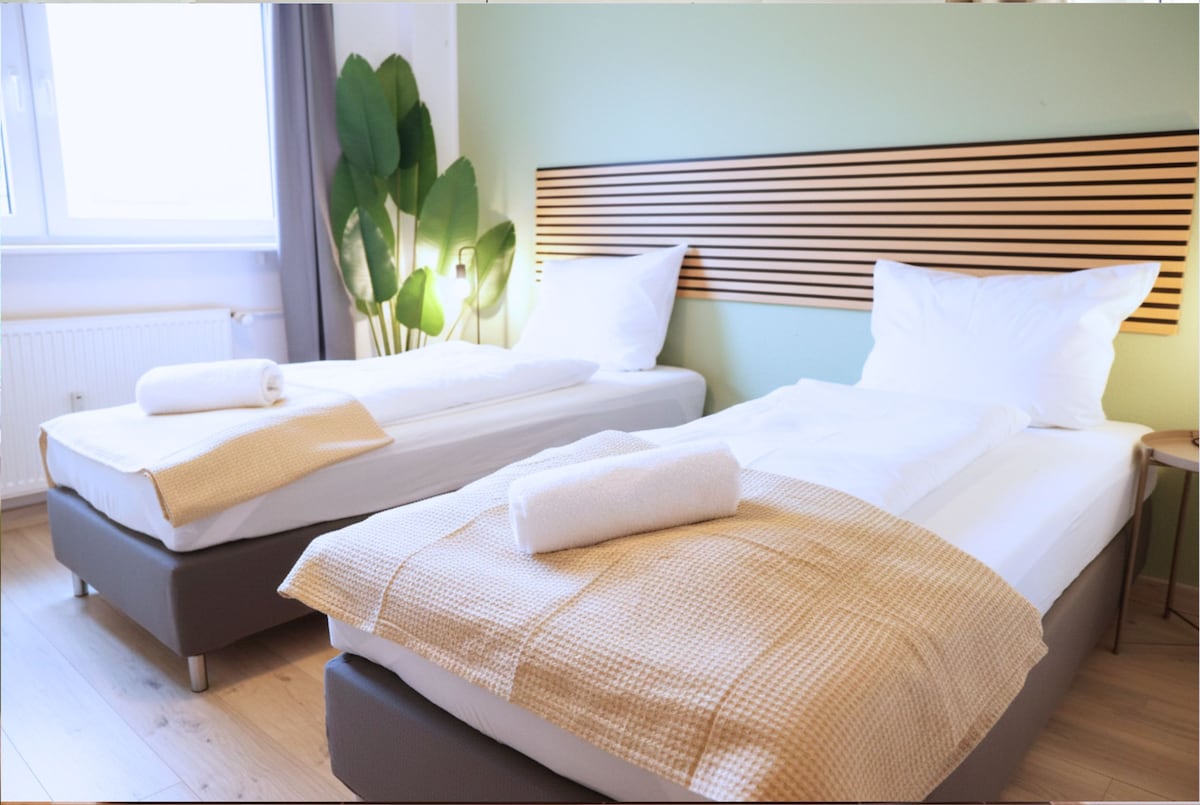 Leiligheten fengsler med en unik atmosfære og er en elegant oase av velvære i byen. ✓ har plass til opptil tre personer ✓ Kjøkken med keramisk komfyr/komfyr/kaffemaskin (inkludert pads)/… ✓ dobbelmadrass av høy kvalitet inkl. sengetøy ✓ Bad med nødvendige fasiliteter, inkludert håndklær og hårføner. ✓ Internett med trådløst nettverk, smart-TV for Netflix, ladeadapter for mobiltelefon ✓ God forbindelse til kollektivtransport. ✓ Sentrum ligger innenfor gang- eller toglengde på noen få minutter.