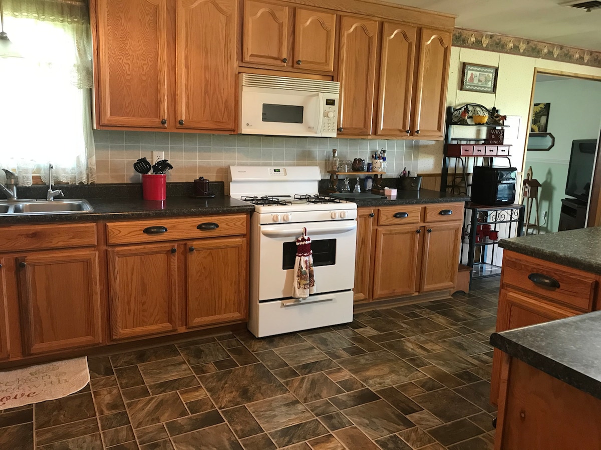 Kom og koble fra og kom deg litt vekk på gården! Vi ønsker dere velkommen til vår sjarmerende og private gjesteleilighet, med en landstemning. Ligger tvers over kjørefeltet fra vårt 100 år gamle gårdshus like utenfor Yoder, KS. Du befinner deg i hjertet av Amish-fellesskapet. Hvis du liker gårdsdyr, er dette stedet for deg.... hester, kyr, kalkuner, kyllinger, marsvin, kaniner og rikelig med gårdskatter og vår trofaste hund, ingefær kan alle bli funnet. En enkel frokost vil bli gitt.