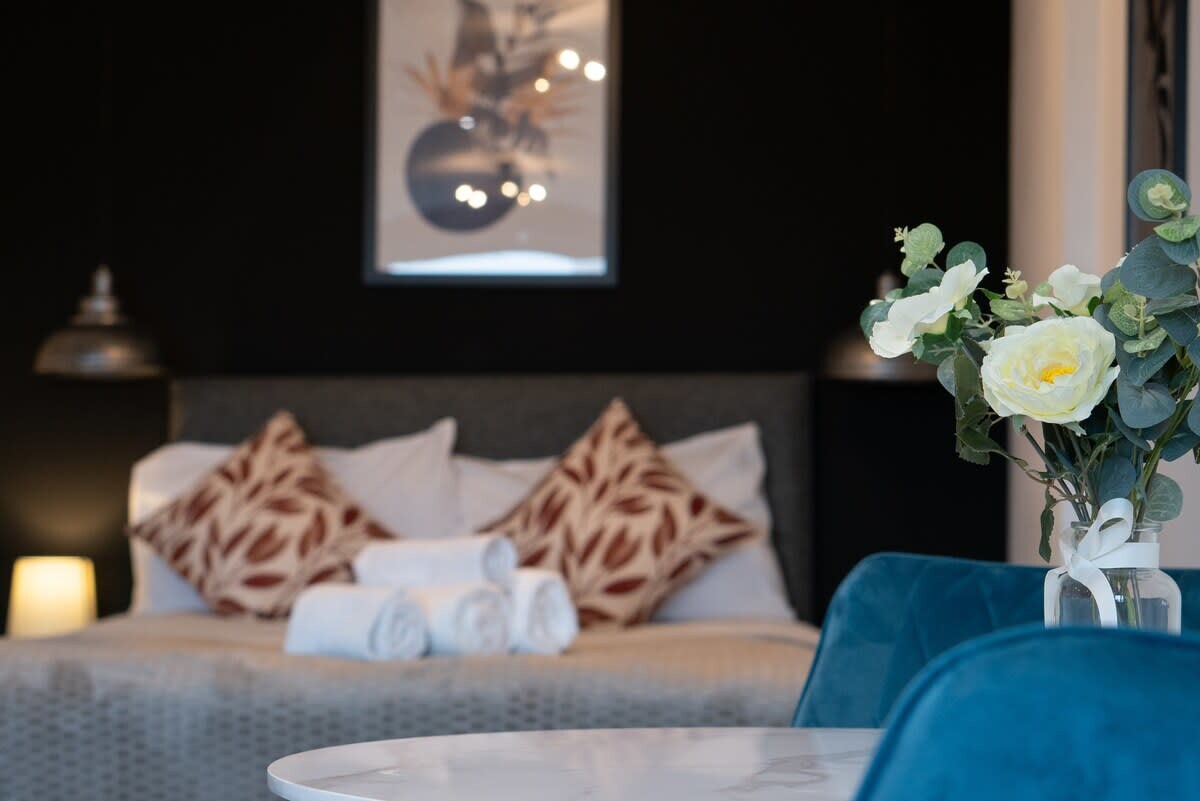 En lys og vakkert presentert studioleilighet i første etasje i den fantastiske markedsbyen Stamford. Gjemt bort fra elven Welland og i nærheten av Burghley House. Det ligger praktisk til bare fem minutters gange fra sentrum. Det lille Airbnb-utleiestedet har én liten parkeringsplass utenfor gaten. Ideelt for forretningsreisende, feriegjester og helgegjester. Waters Rest er dekorert med myke farger og materialer som gir den avslappende stemningen du finner på et boutiquehotell.