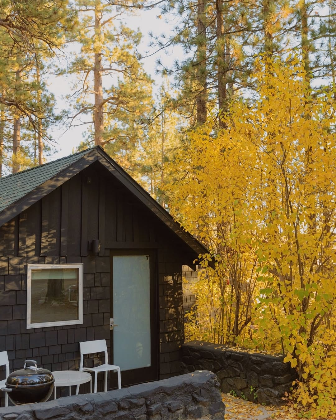 The Colorado Lodge is a psychedelic + super galactic mountain retreat conceptualized and developed by a riotous crew of Echo Park punk architects and builders who share an affinity for plywood and howling at the moon. The cabins are newer on the inside with a sleek, clean modern style. Baltic Birch lined walls, custom-built cabinetry and shelving throughout. Located in the heart of Big Bear Lake, walking distance to the Village, Parks, Lake and just a few blocks from Snow Summit.