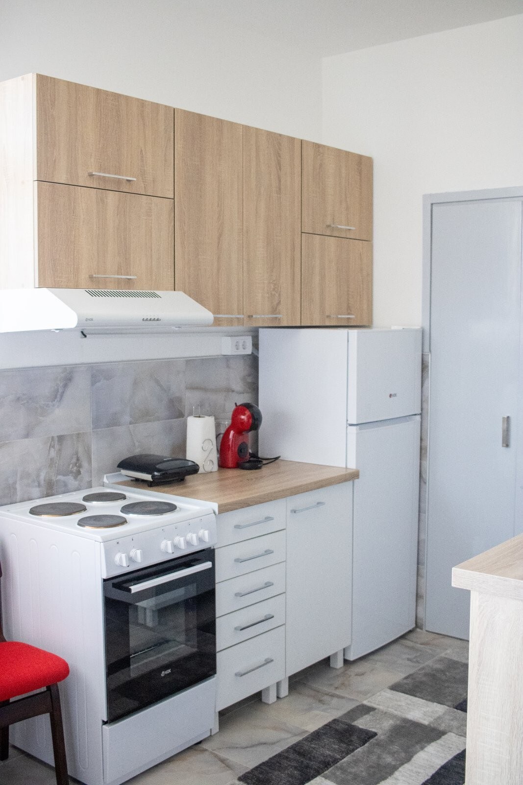 Kralja Stefana Prvovenčanog 96/10 Vranje Romslig, nyoppusset leilighet i sentrum av Vranje – ideelt for et familieopphold. Nyt komforten og det praktiske ved å bo i en moderne leilighet på 80 m², som ligger i sentrum av Vranje. Leiligheten inneholder to separate soverom (ett med fransk seng og ett med to separate senger), stue med sovesofa, fullt utstyrt kjøkken, spisestue, moderne bad og møblert terrasse for morgenkaffe eller kveldsro.