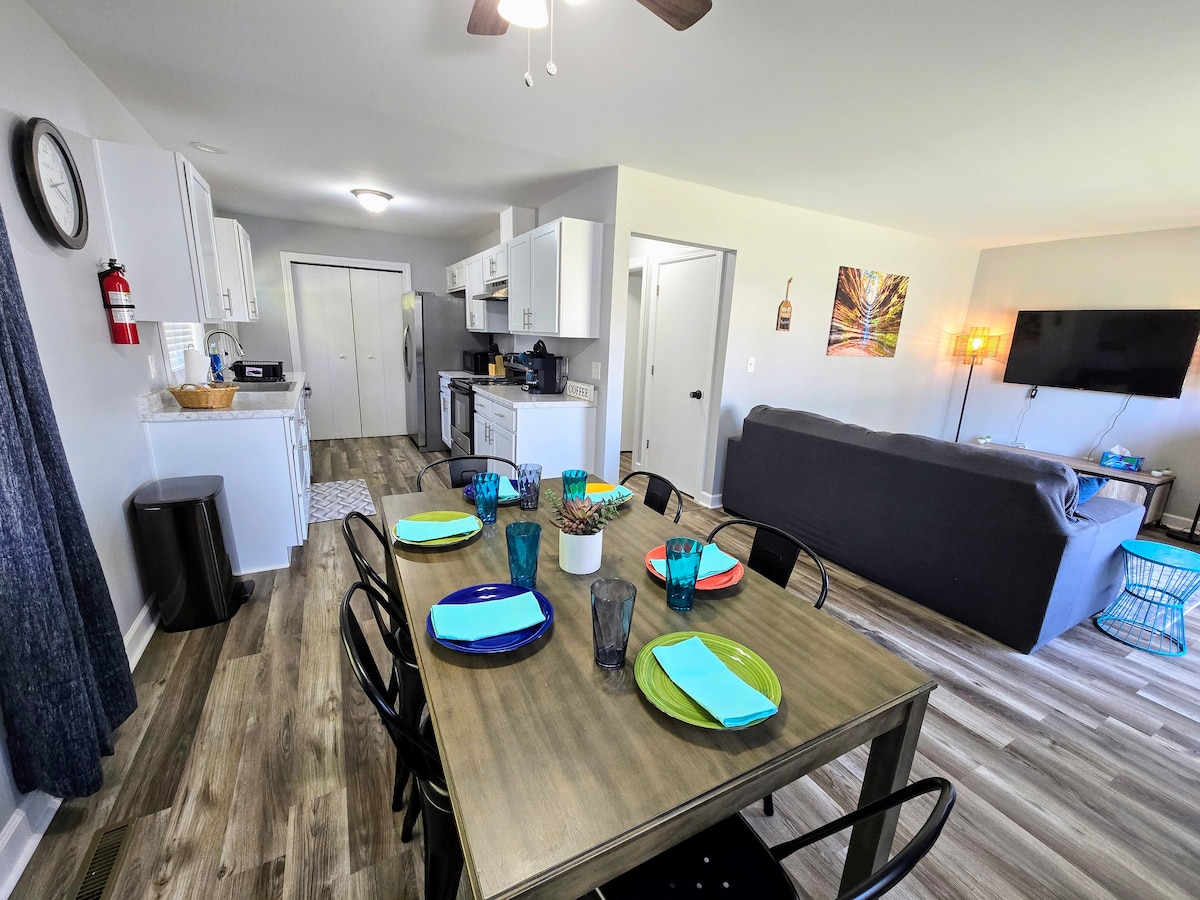 Denne ombygde leiligheten med ett soverom og ett bad og en sovesofa i queensize-størrelse ligger i sentrum av North Utica, i kort avstand fra den fantastiske Starved Rock State Park. Leiligheten har et moderne og stilig interiørdesign, med rikelig naturlig lys som strømmer inn gjennom store vinduer. Soverommet har en komfortabel kingsize-seng. Kjøkkenet og badet er totalrenovert med nye inventar, kvarts benkeplate i dette fullt utstyrte kjøkkenet.
