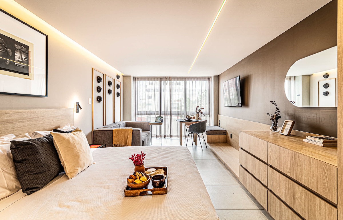 Du er i ferd med å oppdage det neste oppholdet ditt! Vi er glade for å ønske deg velkommen til leilighetene våre. Denne bygningen har ikke bare en førsteklasses beliggenhet, men den forteller også en historie som feirer samtidig meksikansk kunst og kultur. Fra håndlagde Talavera-stykker laget i Puebla til ikoniske sitater fra kjente meksikanske kreatører som Octavio Paz og Alejandro González Iñárritu, er hvert hjørne designet for å inspirere deg. I tillegg får du nyte en av de beste utsiktene i byen.