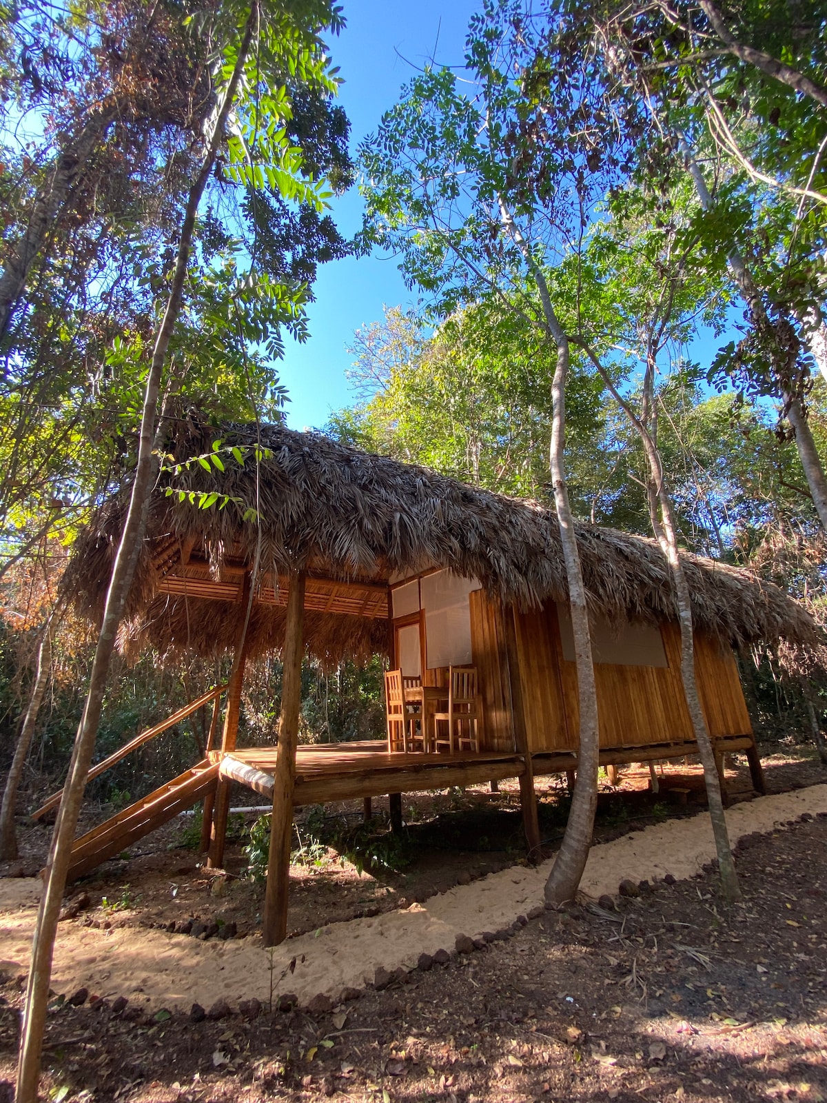 Etter en dag full av stier, varme kilder og fossefall, er det ingenting bedre enn å lade opp i et fredelig hjørne. Tenk deg å avslutte dagen med en hydro for å slappe av, en hjemmelaget middag (planlagt) og en fin seng i klimaanlegget. Teltet vårt er et tilfluktssted midt i naturen, med komfort og privatliv, perfekt for par (av alle slags kjærlighet) som ser etter kontakt og eventyr. I nærheten av de varme kildene i Buritis (1 km), Rio Sono (1,5 km), Salto (2 km), Paraíso (2,5 km) og Ceiça (5,5 km).