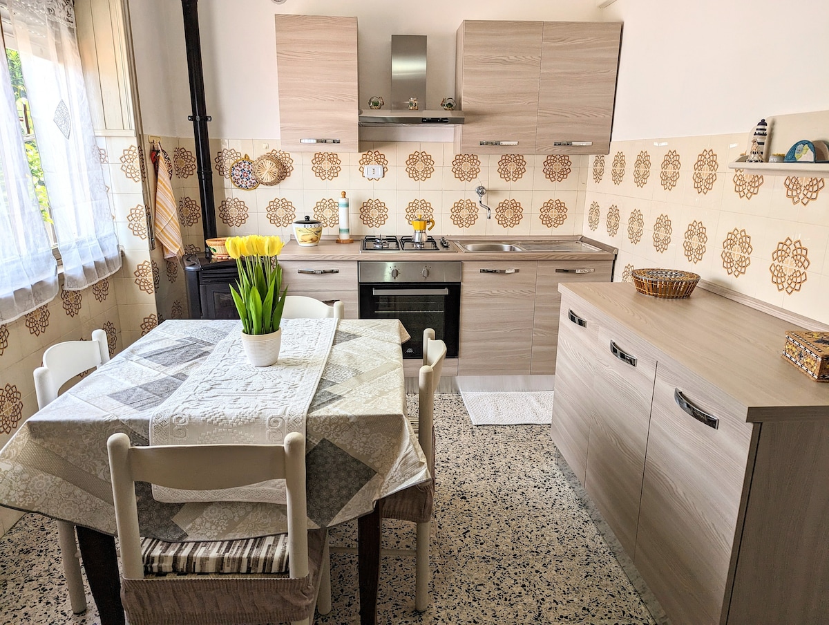 Helt nytt hus i to etasjer med en stor hage (3000 kvm), et privat svømmebasseng og bare syv minutters gange fra Spiaggia Grande-stranden. Den ligger på landet og er omgitt av uberørt natur. Den tilbyr fred og privatliv, samtidig som den ligger i nærheten av havet. Hvert år fokuserer vi på å forbedre gjestenes komfort. I 2026 pusset vi opp kjøkkenet helt og la til en oppvaskmaskin og et stort kjøleskap, pluss en automatisk port ved inngangen for enklere tilgang.