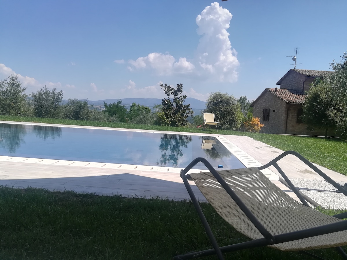Eiendommen ligger nedsenket på landet og 10 minutters spasertur til Todisenteret. Fra svømmebassenget (5x10m) kan du nyte en spektakulær utsikt over de umbriske bakkene. Den store hagen, olivenlunden, pergolaen, frukthagen og grønnsakhagen er plasser tilgjengelige for å gå og slappe av, hvor selv barn kan snu seg uavhengig i maksimal sikkerhet.