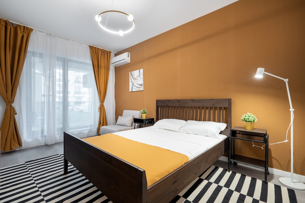 Studio Modern totalrenovert januar 2024, jeg inviterer deg til å bo på dette koselige og rolige stedet, hvor du vil føle deg som hjemme. Studio ligger i nærheten av Afi Mall = 800 m / Plaza Mall =800 m/Shopping Complex + Auchan Supermarket =500 m / Mega image / Profi =100 m/ Restaurant Hanul Drumetului 300 m /Steaua Stadium. Transportmidler: hovedtrikk 41= 5 min til fots (forbindelse nord for hovedstaden) , buss som forbinder til sentrum av hovedstaden = 5 min til fots.