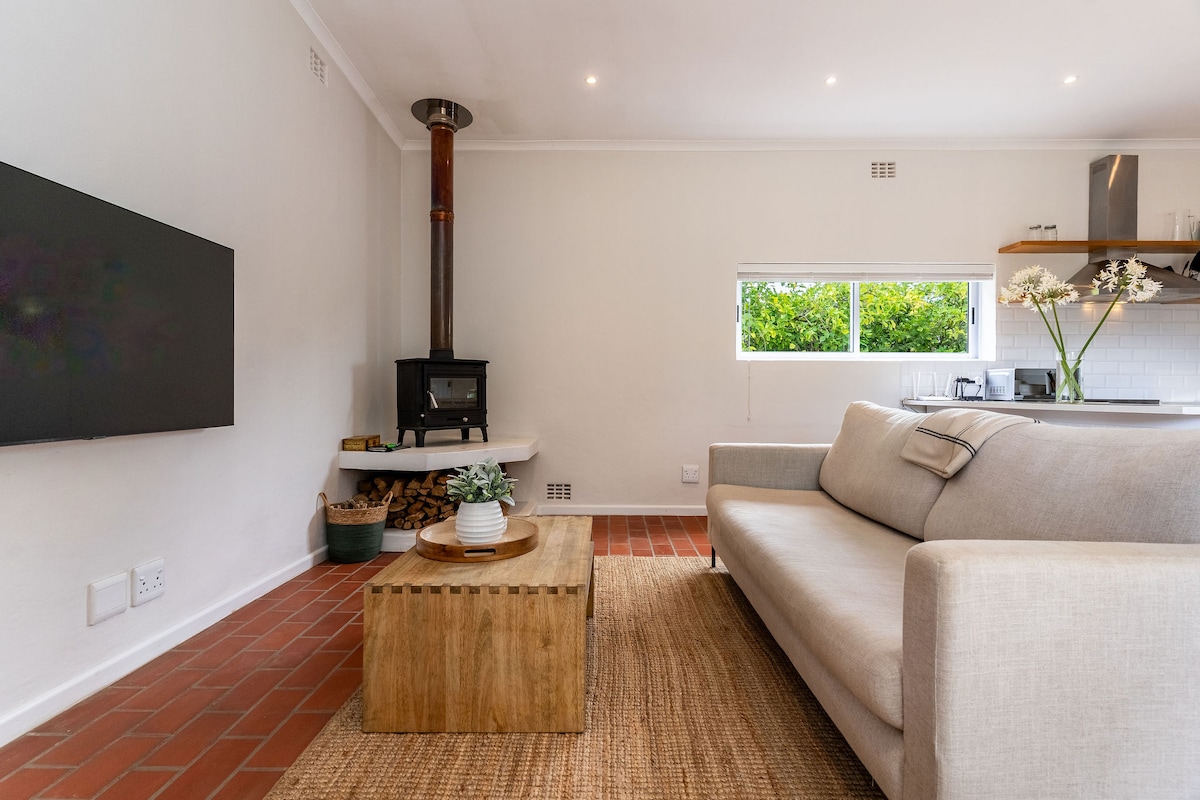Velkommen til vårt romslige, uavhengige og stilige feriested med ett soverom, som ligger på Blauwklippen-veien bare minutter fra Stellenbosch. Rock House er perfekt for å nyte severdighetene i den historiske byen Stellenbosch, terrengsykling eller en rask runde golf. Selv om butikker og restauranter ligger bare fem minutter unna med bil, føles området fredelig og avsidesliggende. Enten du er her for en helgetur eller et lengre opphold, har Rock House alt du trenger.