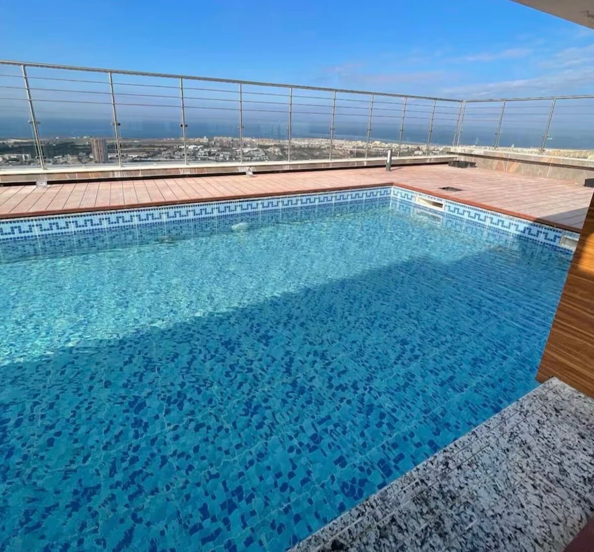 Magnifique appartement T5 surplombant la baie de Mostaganem ,élégant ,spacieux, parfait pour un séjour inoubliable en famille Résidence sécurisée 24/24 parking surveillé, piscine rooftop Piscine sur le toit , une vue et couché de soleil magnifique Accès à la piscine disponible en saison, de juin à fin septembre Chaque jour, profitez d’un créneau privé environ 2h UNIQUEMENT pour vous , votre famille. Détente, intimité et une vue panoramique sur Mosta et la mer ,Un luxe rare , séjour inoubliable