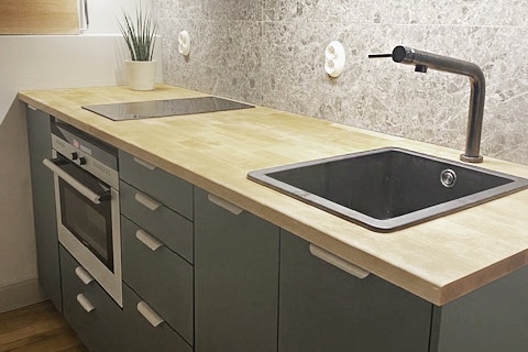 Fullt møblert, vakker studioleilighet i en villa i et fredelig område. Studioet ligger bare 20 minutter fra sentrum. Studioleiligheten tilbyr overnatting for et par eller en enkeltperson, med en balkong med utsikt over hagen, ett soverom (seng på 140 x 200 cm), en stue og et godt utstyrt kjøkken med oppvaskmaskin og kjøleskap. Sofasengen i kjøkkenet/stuen kan gjøres om til en madrass på gulvnivå. Fullt utstyrt kjøkken med induksjonstopp, stekeovn, minikjøleskap, vannkoker og brødrister.