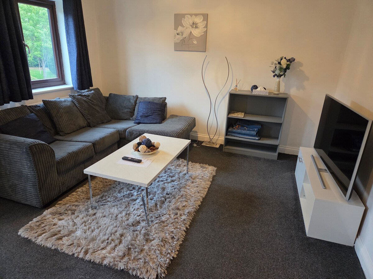 Et lyst, moderne sted i en selvstendig leilighet. Sentrum ligger to miles unna og langs en bussrute. Parkering foran eiendommen er gratis og sikker. Trådløst nettverk er inkludert for gjester. TV te/kaffe og frokostblanding tilgjengelig Kjøleskap med fryser. Vaskemaskin, strykejern/strykebrett. komfyr og kjøkkenutstyr vannkoker/pluss bestikk og tallerkener brødrister Kaffemaskin mikrobølgeovn soverommet har doble garderober i full størrelse med speildører tilgang til et hageområde for å nyte kveldene