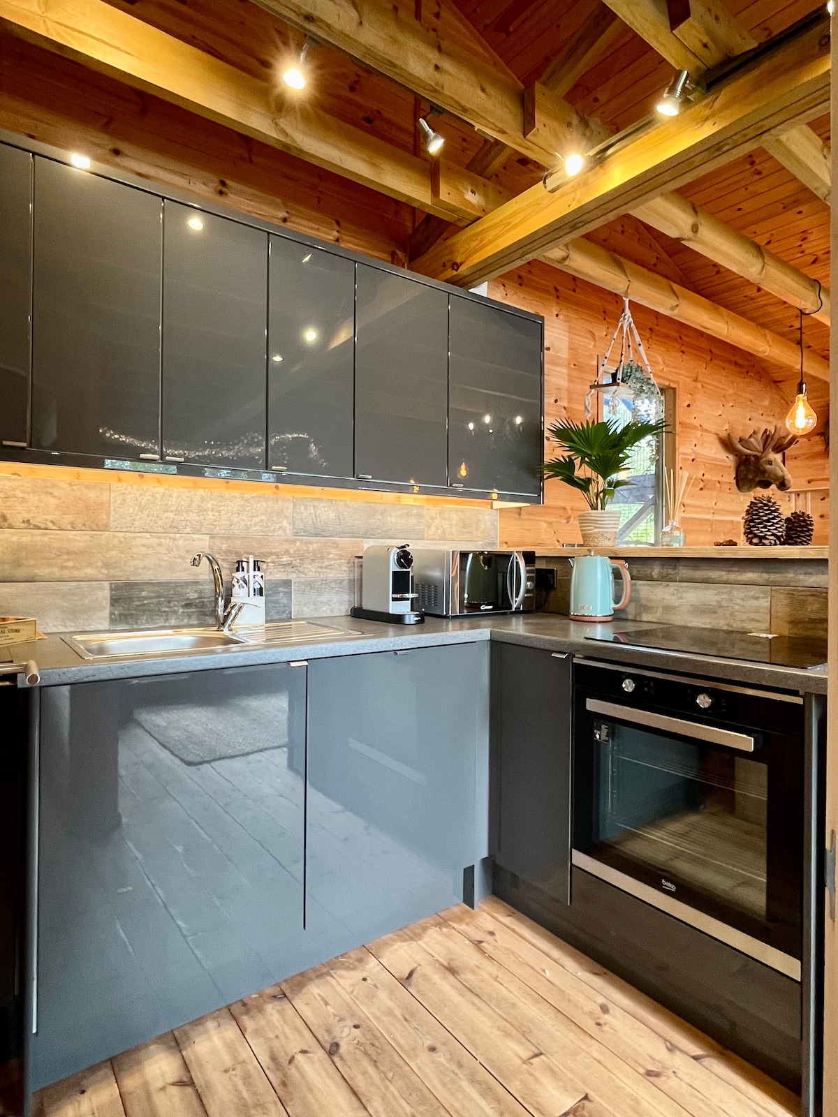 Tømmerhytte ved vannet med en fantastisk utsikt