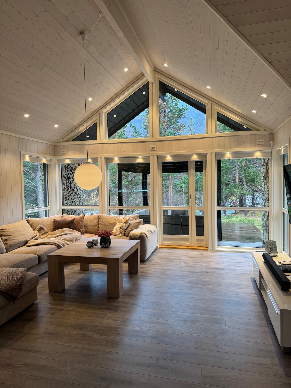 Stor, moderne hytte i fantastiske omgivelser med utsikt til fjell og en flott elv som renner rett ved eiendommen. Skibotn er kjent for sitt stabile klima som ofte byr på klart vær med gode muligheter for å se det arktiske nordlyset. Hytten ligger i et skjermet og privat område med kun noen få andre eiendommer i nærheten. Avstand med bil. Tromsø sentrum - 1 time og 45 minutter Lyngen og Lyngsalpene - 1 time Kilpisjärvi - 40 minutter Restaurant - 10 minutter Matbutikk - 8 minutter