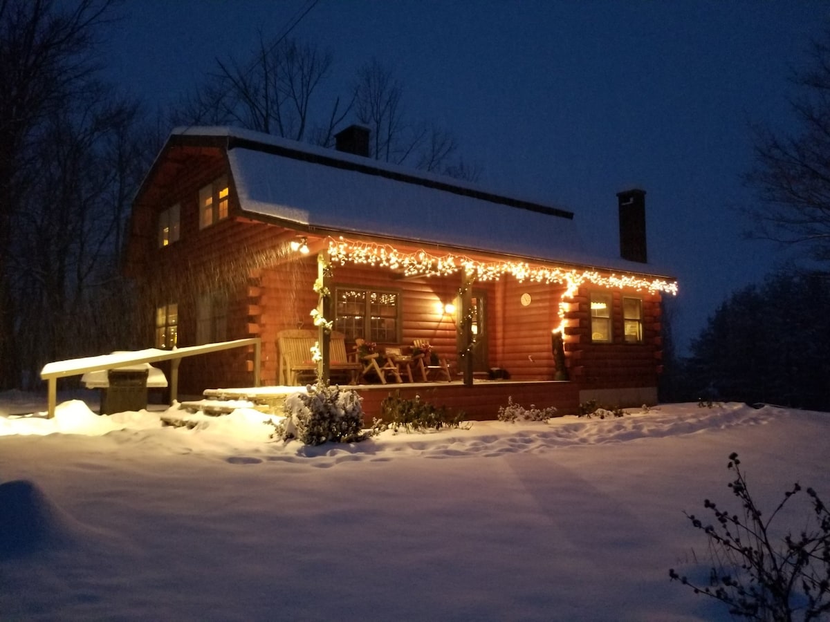 Hyggelige, RUSTIKKE, rolige, skogkledde omgivelser. Privat bablende bekk, gasspeis, boblebad, memory foam Madrass, koselig komfyr, komplett kjøkken, ferske sengetøy, SMART-TV, WiFi, rent bad, kullgrill, piknikbord, branncelle. Minutter til prisbelønte restauranter, ski, sledeturer og alle attraksjoner. 1,5 km til Black MT, rideturer til hest/ponni, pub med spadehåndtak, gårdsstand osv. Vandring, snøsko (2 medfølger), langrennsski, slede fra HOVEDDØREN. 2 dobbeltsenger og brett ut futon.