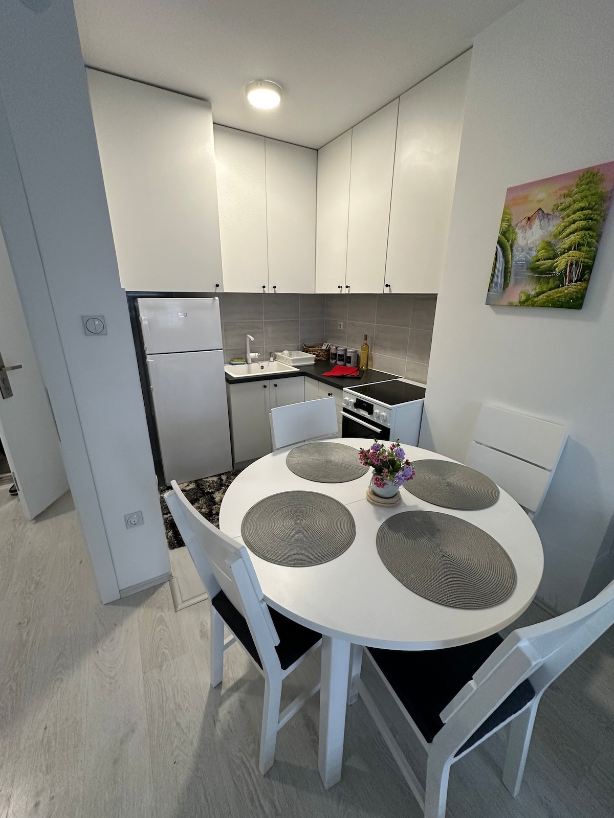 Welcome to our stylish, fully-equipped apartment in central Sokobanja, suitable for both short and long stays. This space is cosy & private, perfect for couples, small families or trips with friends. It has a cozy living area with a plush sofa that easily transforms into a comfortable sofa bed, flat-screen TV, dining area, air-conditioner, WiFI. A comfortable large bedroom with a queen size bed & large wardrobe space. Fully equipped kitchen, bathroom, balcony, parking. Self checking.