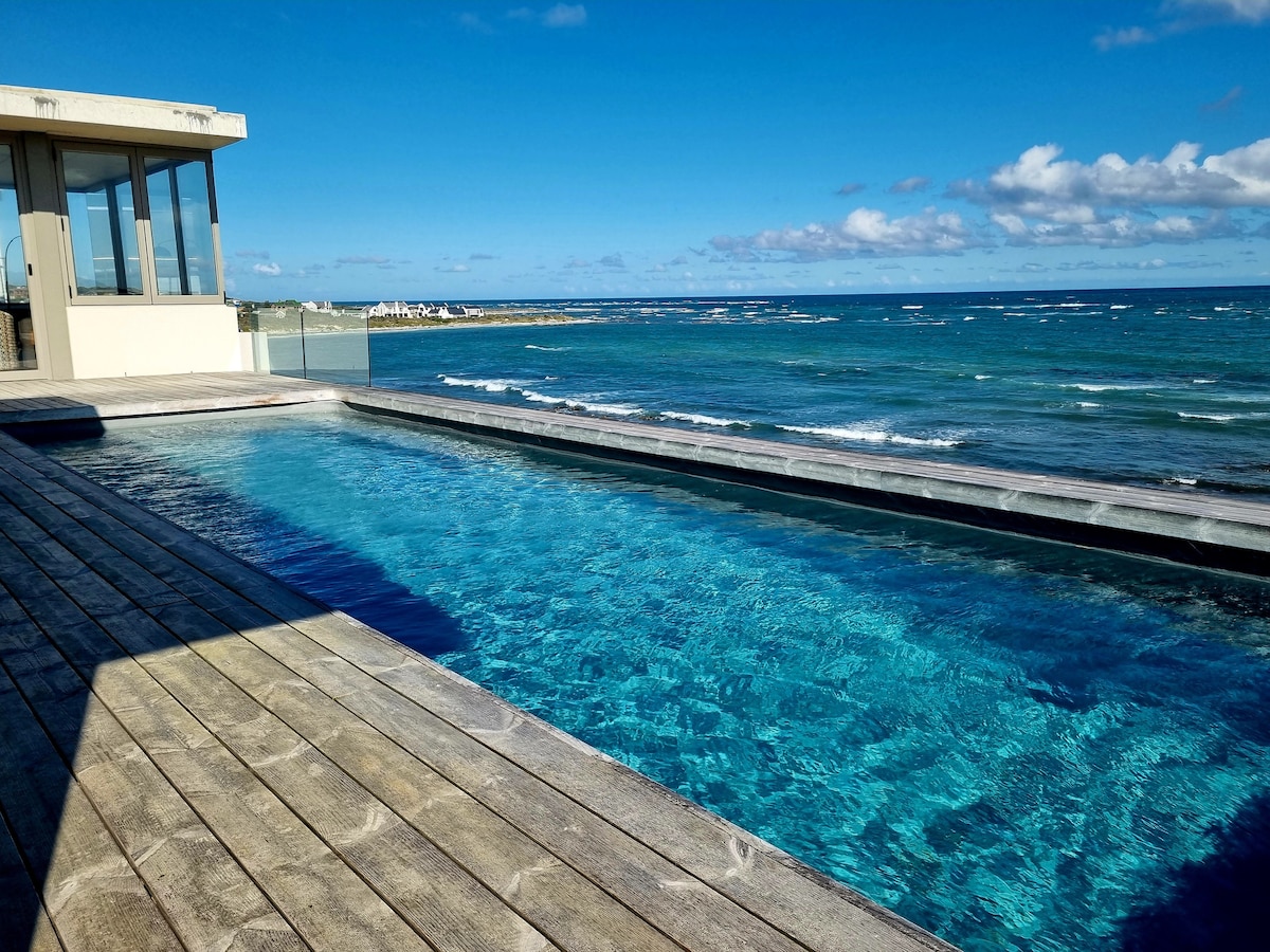 Feriehuset vårt ligger i eksklusive Langezandt Estate, en privat enklave på stranden i Struisbaai, 2,5 timer fra Cape Town. Hytta har moderne oppussinger, samt et luksuriøst utstyrt kjøkken, kvalitetsfinish og et nydelig lite privat svømmebasseng. Livsstilen med både innendørs og utendørs er perfekt for uteliv. Ta en 4 minutters spasertur til en sandstrand, eller slapp av ved bassenget. Trådløst nettverk med et «anti-strømbrudd»-batteri betyr at du kan jobbe eksternt hvis du virkelig må!