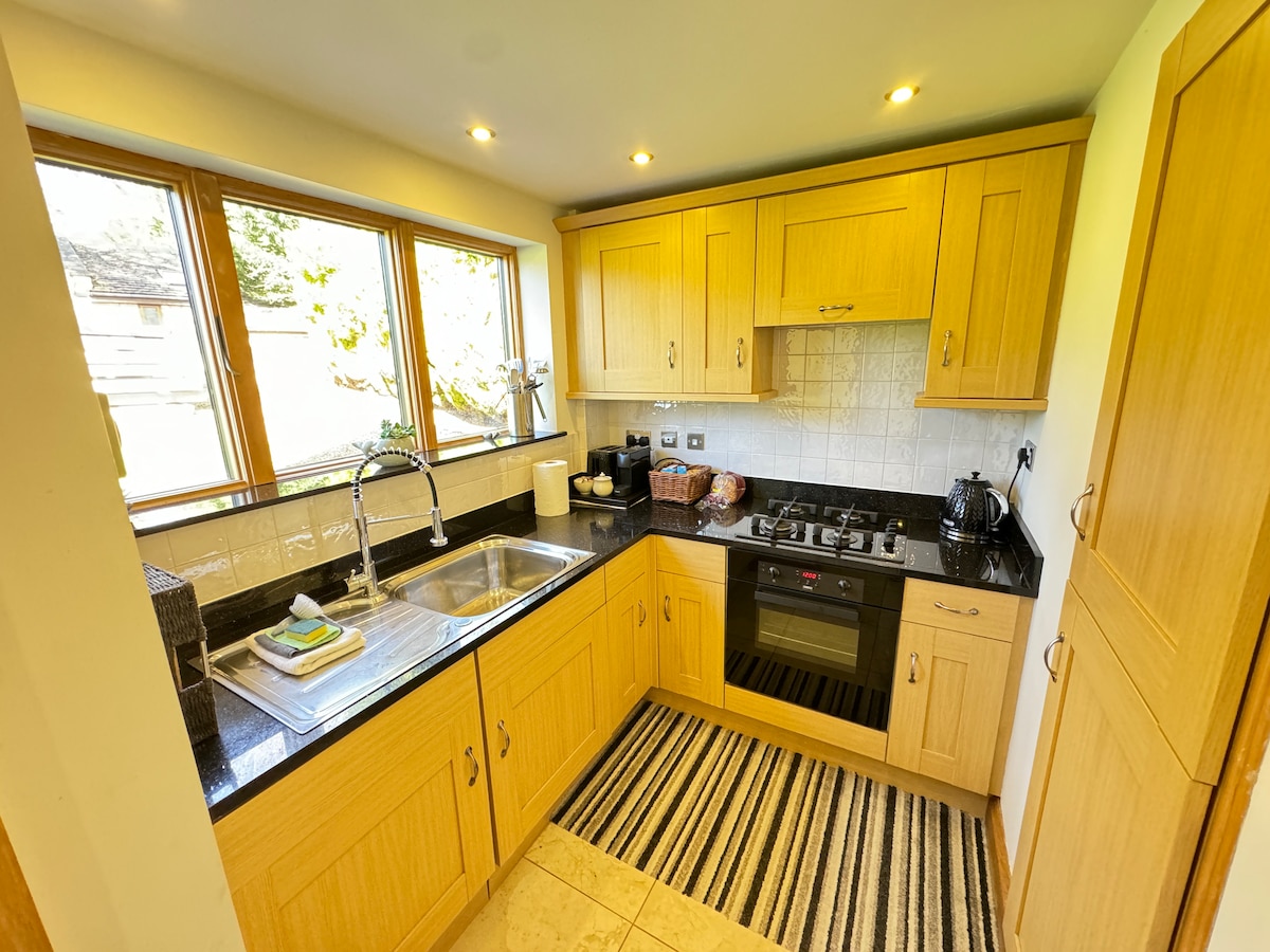 🦆 Et plettfritt og gjennomtenkt designet anneks som blander hjemlig komfort med et snev av luksus. I utkanten av Cotswolds og i nærheten av Stratford-upon-Avon, tilbyr det nydelig utsikt over landskapet og et fristed for to. Inne kan du nyte det åpne kjøkkenet med en Nespresso-maskin, en plettfri og komfortabel seng, en koselig stue og et uberørt bad. Ute kan du slappe av i den private, skjermede hagen med utebad, bålplass og sitteplasser. Helt ny eksteriør (est. 2026). Ladestasjon for elbil tilgjengelig.