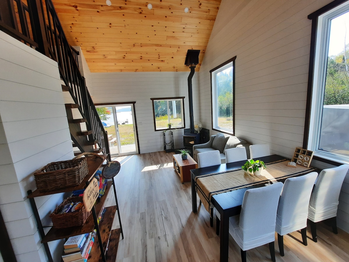Velkommen til AAT, A-Frame-ferie ved vannet. Plassert over den franske elven. Omgitt av 2+ hektar nordlig skog, blander dette arkitektoniske tilfluktsstedet luksus og natur. Samles i det lyse, åpne konseptet eller slapp av utendørs ved peisen eller i boblebadet året rundt. Sengeplass til seks med et koselig loft og et rullestolvennlig rom med king-size-seng. Utformet for kontakt, komfort og uforglemmelige øyeblikk. Skap varige minner på AAT.