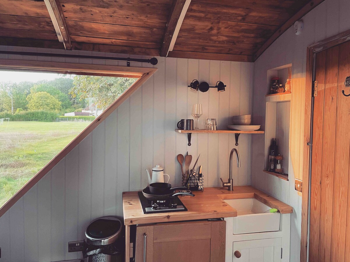 Det perfekte stedet å legge livet bak seg og koble fra. Et landlig tilfluktssted i en familiegård bare ti minutter fra Suffolk 's heritage coast. Bare to timer fra London. Hytta har: - Et helt privat jetdrevet varmt boblebad kun for ditt bruk, 24/7. - kingsize-seng (med madrass i memory foam). - Fullstendig plumbed en-suite med toalett, regndusj og vask. - Hundevennlig, med spaserturer over gården. - Møt grisene våre. - Ingen trådløst nettverk (men 4G-signalet er ganske bra).