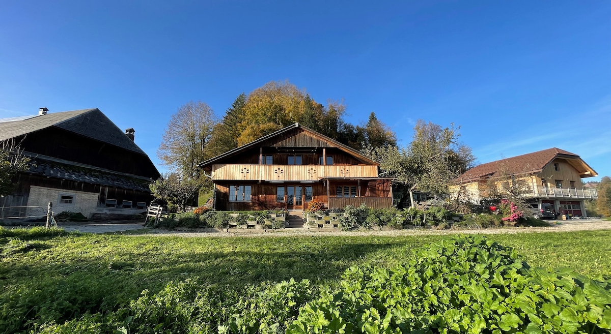 Leiligheten ligger i første etasje (uten terskel) med egen inngang, eget bad og kjøkken. Den idylliske gården Flühmatt ligger 850 moh, innebygd i det kuperte landskapet ved porten til Emmental. Regionen er ideelt egnet for turer til Ahorn, Hinterarni eller Napf-regionen. Den populære Herzroute fører syklister bare noen få meter forbi huset. Om vinteren anbefales regionen for turer med snøsko eller slitteløyper. Jeg gleder meg til besøket ditt!