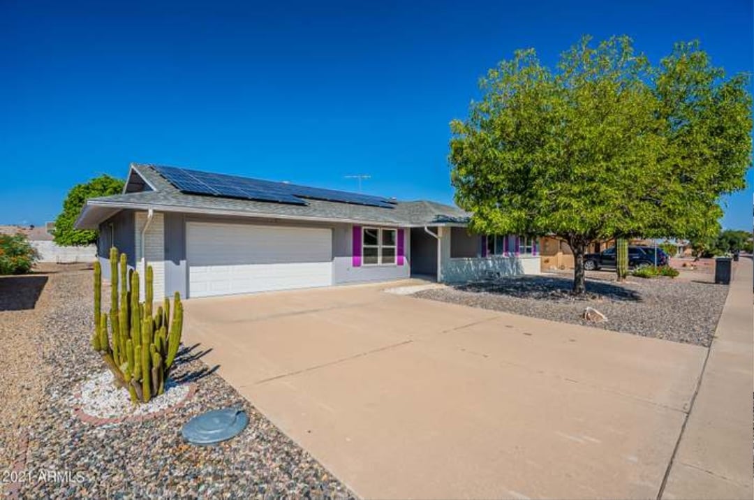 Nicely updated two bedroom one bath home with beautiful outdoor spaces is ready for your visit. You will enjoy this 55+ active community. This one level home is only a short drive to all conveniences in Sun City. Please note: One guest must be at least 55 years old. People under the age of 19 are limited to 30 days. Owners park one small car in the garage year round. House is blue/gray but sunny pictures make it look yellow sometimes. 7 day minimum stay.