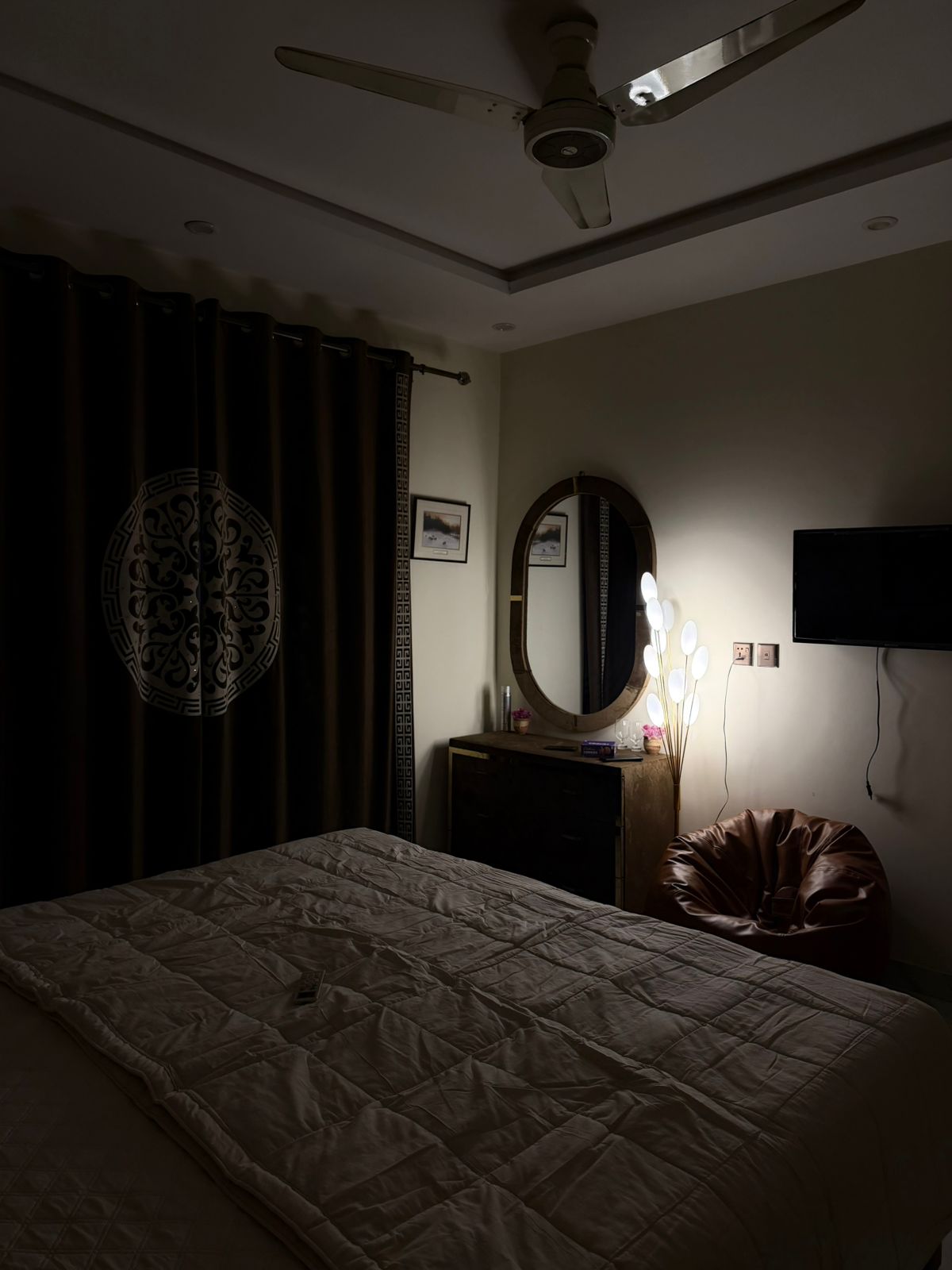 1 BHK-leilighet ved Staysia Rooms – Talha Block, Bahria Town Lahore • Ligger i 6. etasje med vakker utsikt. • 1 soverom med klimaanlegg • sovesofa i stuen for ekstra gjester • trådløst nettverk for pålitelig internettilgang • Fullt møblert med alle grunnleggende nødvendigheter. • Moderne og trivelig interiør for et komfortabelt opphold. • Ideell for par, enslige reisende eller små familier • Ingen fester, narkotika eller høy musikk for å sikre et rolig miljø. • Ved lengre opphold belastes strøm separat.