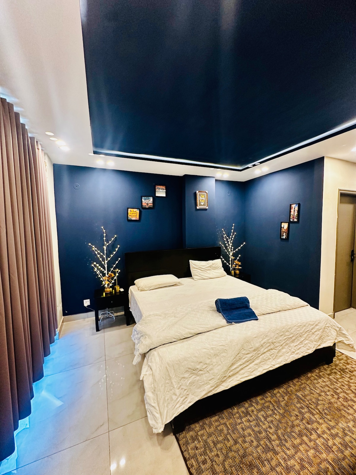 Royal Oasis - Premium Designer Suite with a Grand Scenic View of Talwaar Chowk – Bahria Town Lahore •Modern, cozy apartment with warm lighting and elegant décor •Free WiFi and Netflix access •Comfortable bed for a great night’s rest •Welcome basket with cookies, chips, tea and chilled water bottles •Walking distance from Jasmine Mall •Next to Gloria Jeans and Pizza Max for quick bites and coffee •Ludo and playing cards provided •Ideal for couples, families, solo travelers or business stays