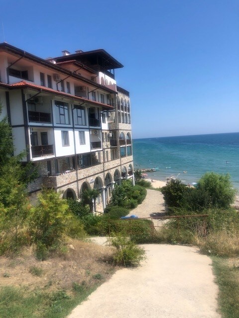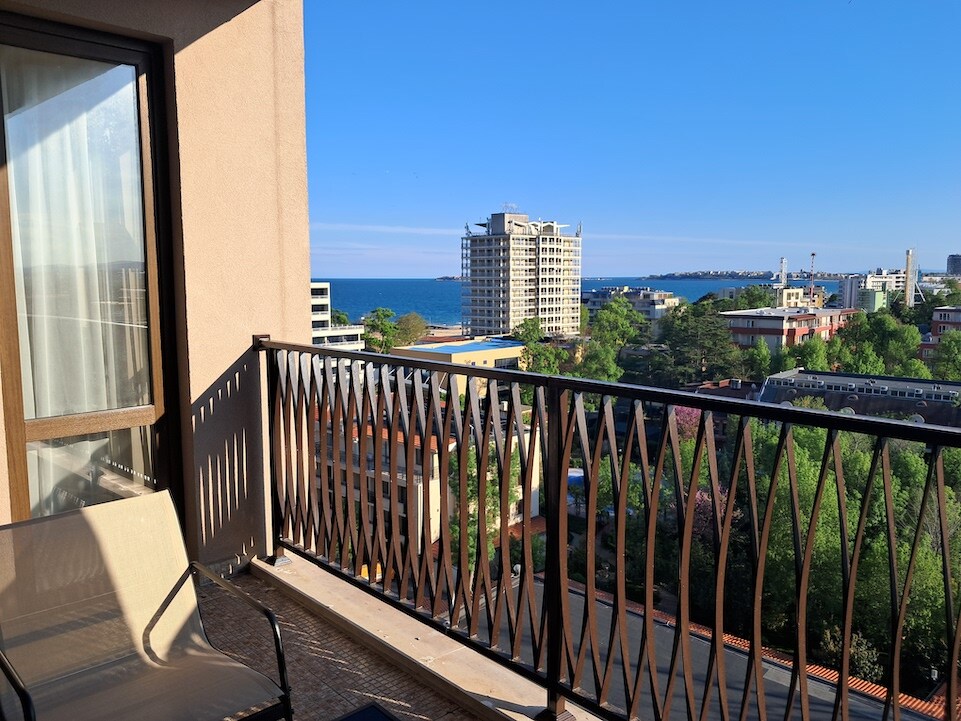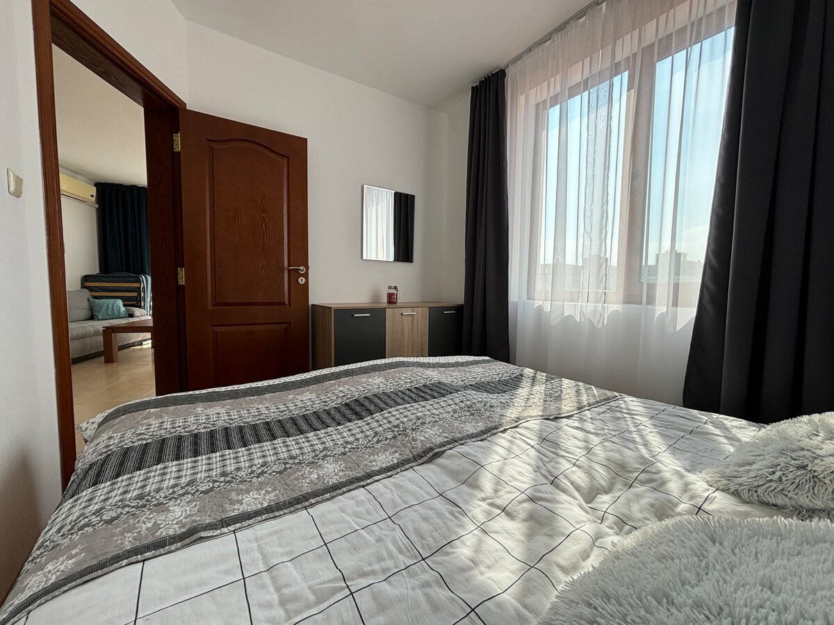 Hvis du leter etter et fredelig sted hvor du kan slappe av, kjøle deg ned og nyte en drink ved bassenget, er stedet mitt det perfekte valget. Balkongleiligheten har delvis havutsikt, raskt trådløst nettverk og ligger i et rolig nabolag i Sunny Beach – bare 650 meter fra sandstranden og lett tilgjengelig til fots.