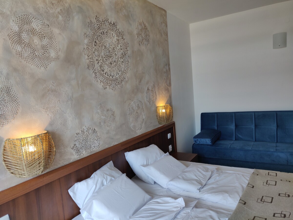 Vi tilbyr en tre-roms leilighet i Nessebar, 50 meter fra stranden, med to soverom, stue med kjøkken og to terrasser. I ett rom er det et soverom og en sengesofa. Det andre soverommet er separat, og to barn kan sove i stuen. Det er en egen arbeidsplass. Leiligheten har vaskemaskin, tørketrommel, stort kjøleskap, komfyr, oppvaskmaskin, kaffemaskin, vannkanne, TV, internett. Med utsikt over havet. Det er 15 minutter å gå til gamlebyen, og du kan også ta toget til Sunny Beach. Det er aircondition i alle rom.
