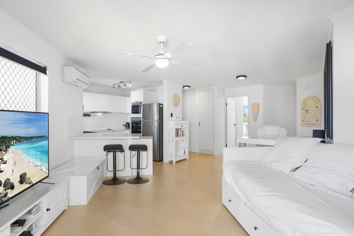 Ligger bare en 2 minutters spasertur til Kings Beach, har denne sjarmerende leiligheten alt du trenger for å grøfte bilen for en ferie. Beliggenheten er omgitt av kafeer, restauranter og Caloundra Central, bare et steinkast unna. Utendørsbasseng og grillplass i fellesarealet. Utpekt gratis parkeringsplass. To minutters gange til Mets på Kings Surf Club, Kings Beach Tavern over veien.