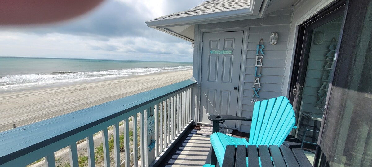 Welcome to the Salty Mermaid! Relax and recharge in this renovated oceanfront condo with panoramic beach views and direct access to the ocean. Enjoy sunrise over the ocean from your private balcony, cozy up by the 75" electric fireplace, or walk just steps to the pool, hot tub, and shoreline. This two-bedroom, two-bath retreat blends modern comfort with unbeatable location. It's perfect for couples, families, or friends seeking the ultimate Garden City Beach escape. Weekly discounts offered!