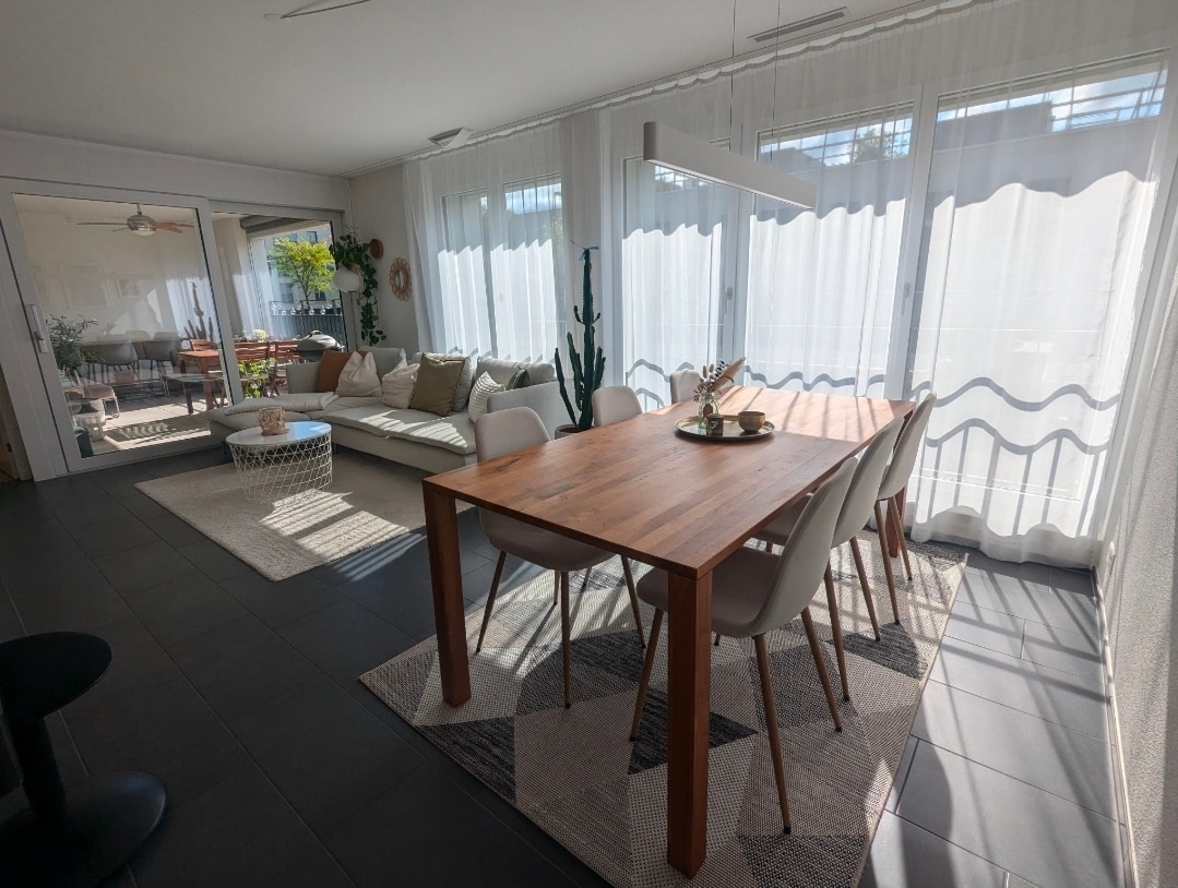 Stor 173 kvadratmeter toppleilighet i fjerde etasje (uten heis) har den 7 rom pluss to store balkonger, en med peis hvor du kan nyte vakre solnedganger over innsjøen Sempach og den andre med fjellutsikt vendt mot fjellet Pilatus og Rigi. Det vakre Sempach sentrum med fine restauranter, dagligvarer og andre butikker ligger kun fem minutters gange unna. Det er den perfekte beliggenhet for å besøke Luzern, Titlis, Mount Pilatus, Interlaken, Jungfrau og mange flere vakre attraksjoner