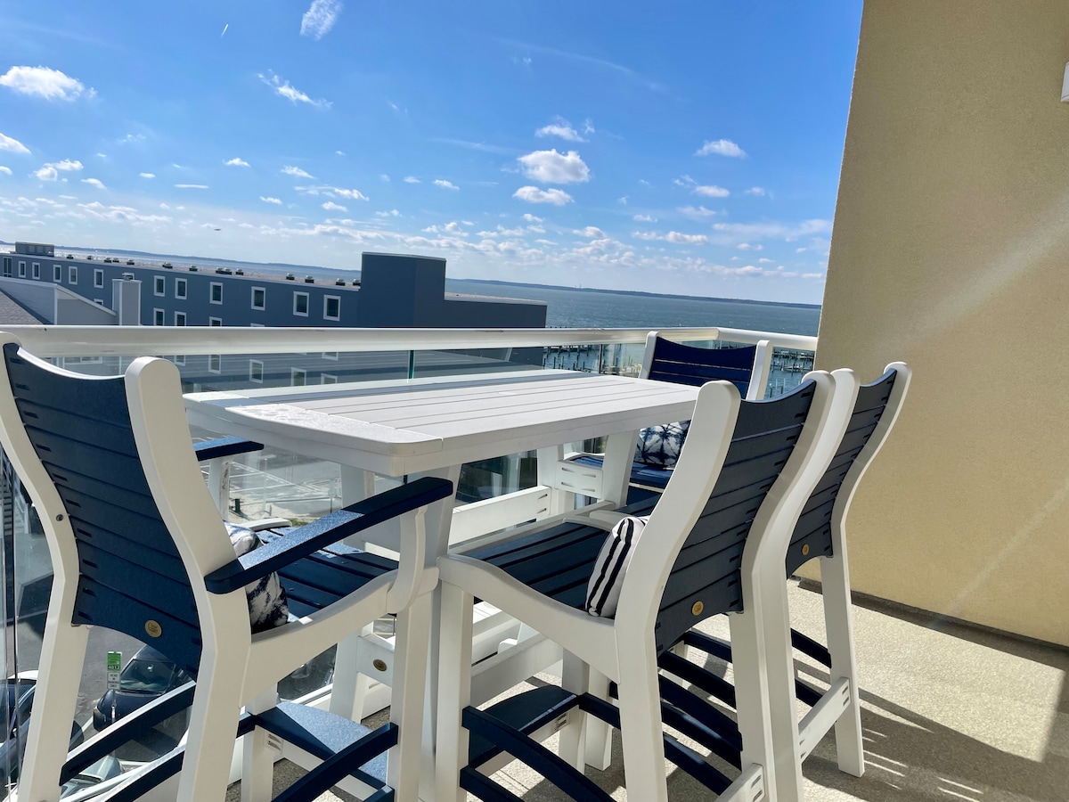 Luksusleilighet med to soverom på The Residences at Lighthouse Cove i sentrum av Dewey Beach. Denne enheten har flott utsikt over Rehoboth Bay og ligger bare ett kvartal fra Atlanterhavet. Enkel spasertur til butikker, restauranter, restauranter og natteliv. Denne enheten har plass til opptil seks personer. Det er et hovedsoverom med kingsize-seng og eget bad. Det andre soverommet har en queen size seng. Det er to sammenleggbare enkeltsenger. Lounge på privat basseng på taket, bålplasser og grill til boliger.