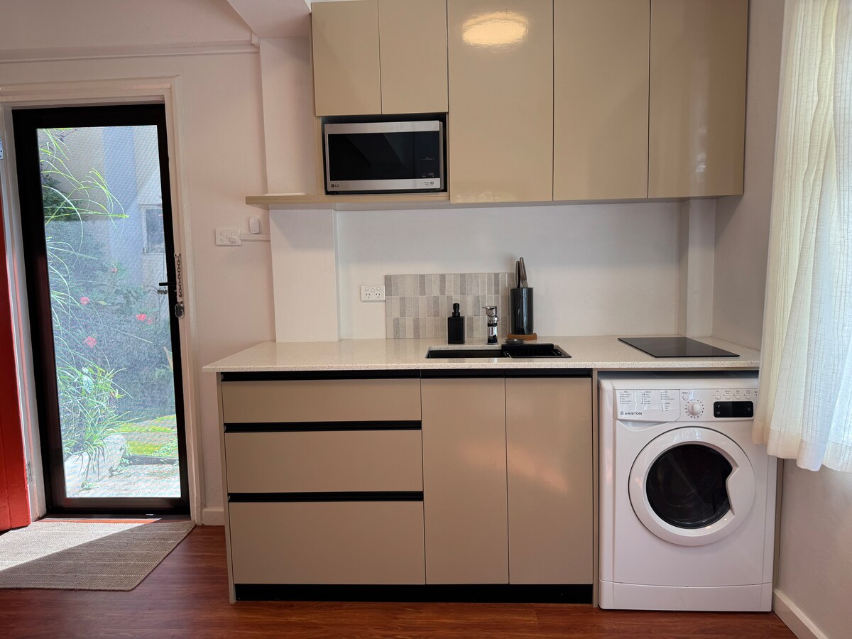 Sjarmerende, moderne leilighet tilbyr den perfekte blandingen av komfort og bekvemmelighet, omgitt av frodige tropiske planter. Inne finner du en innbydende stue med velutstyrt kjøkken: mikrobølgeovn, induksjonstopp og vaskemaskin. Separat, fredelig soverom med romslig oppbevaring. Lyst bad, moderne dusj. Klimaanlegg og takvifter overalt. Beliggende i et rolig nabolag, innenfor rekkevidde av Suva City. Perfekt for profesjonelle som søker en fredelig og komfortabel base.