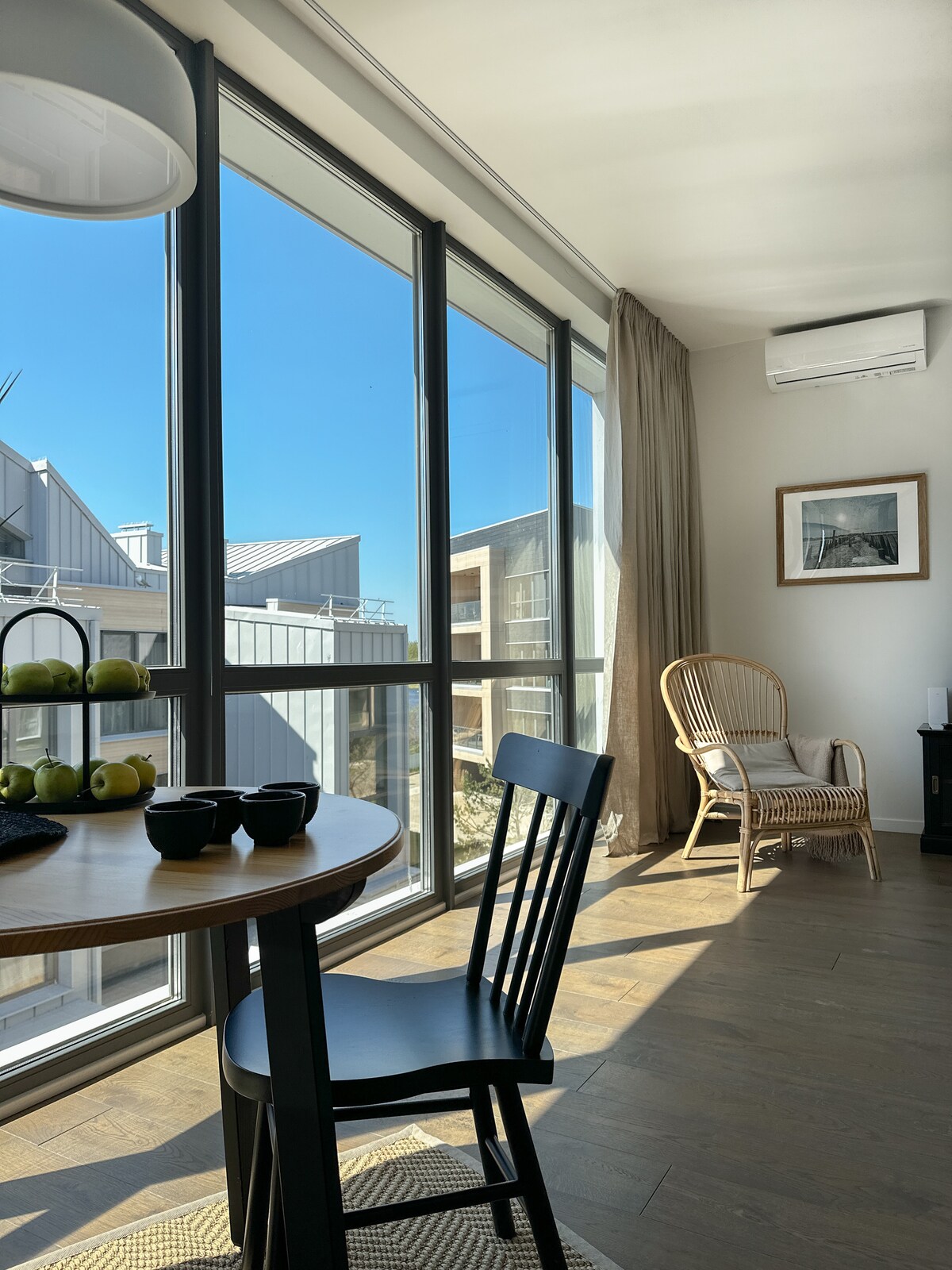 En vakker toppleilighet ved sjøen for par og venner i andre etasje i en bygning som bare har to leiligheter. En moderne og fullt utstyrt leilighet med panoramavinduer vendt mot vest er et godt valg for par eller venner som vil utforske den litauiske kysten, eller et perfekt sted for en avslappende ferie ved stranden. Den romslige, åpne stuen, kjøkkenet og spisestuen med vinduer fra gulv til tak gir absolutt wow-faktoren.