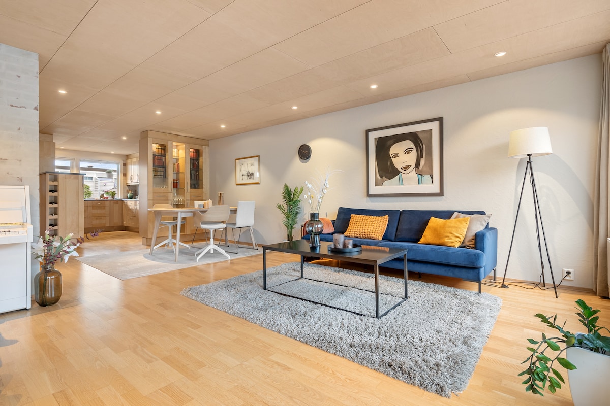 Stilfull leilighet i fredfylt området sentralt på Byåsen. Fire minutter gange til trikken som tar deg til Trondheim sentrum på 12 minutter. Gangavstand til matbutikker, apotek, restauranter og kollektivtransport. Parkliv rett utenfor inngangsdøren med fasiliteter som frisbeegolf, basket, skatepark, grøntområde og andre aktiviteter.