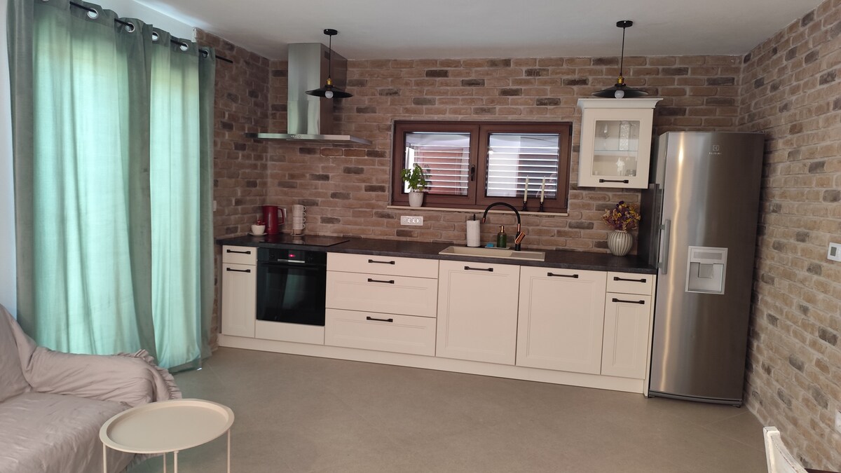 Denne nybygde leiligheten ligger i en fredelig del av byen og tilbyr komfort, privatliv og moderne design. Den har stilig interiør, et fullt utstyrt kjøkken og en avslappende atmosfære som er perfekt for et avslappende opphold. De rolige omgivelsene gjør det ideelt for par eller familier som ønsker å slappe av. Nyt en blanding av ro og bekvemmelighet, bare en kort spasertur fra lokale fasiliteter og havet.
