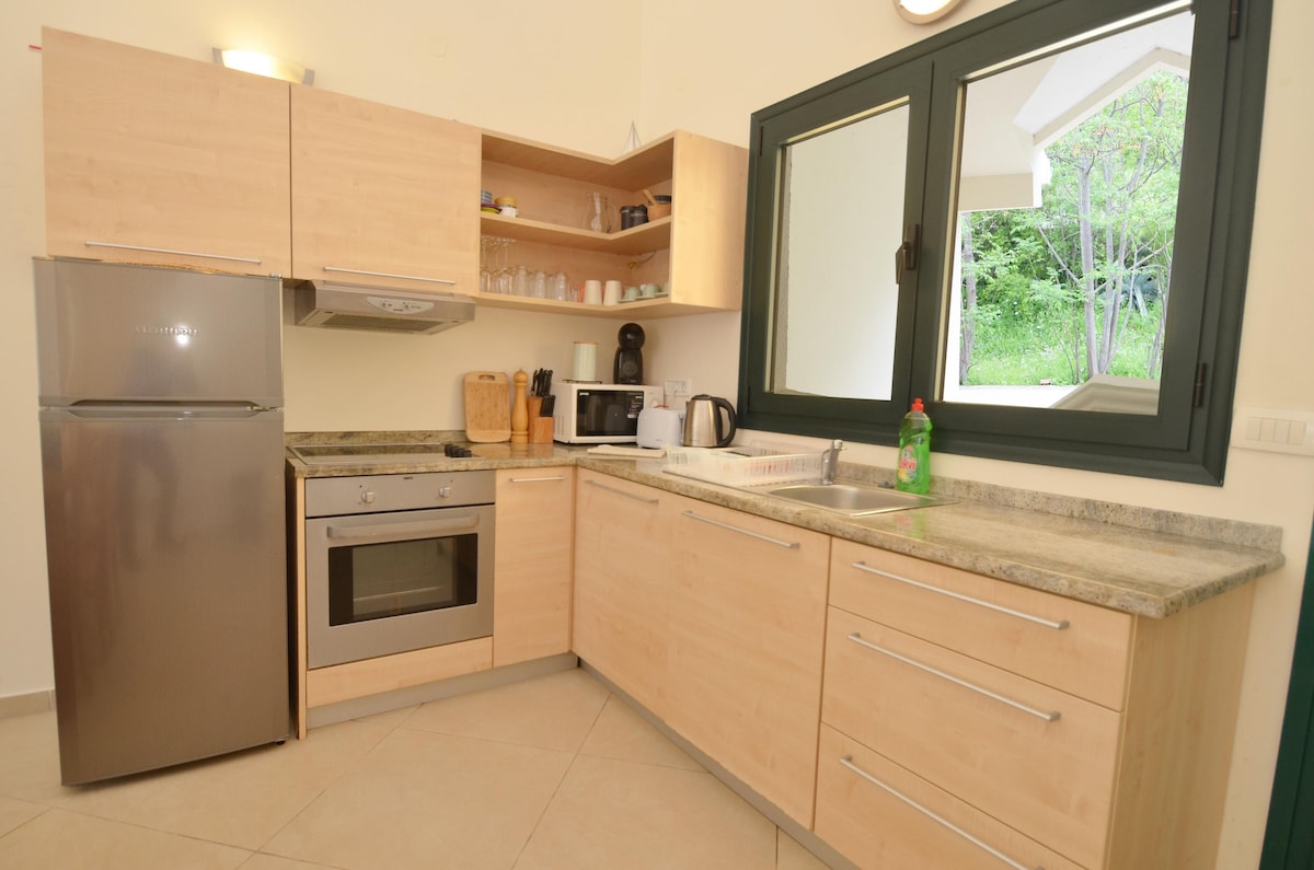 Det lille huset er enkelt og vakkert. Vi gjorde de sterke veggene i den osmanske bygningen fra 1400-tallet om til en unik bolig. Du har tilgang til et rom med en stor seng, to terrasser og en balkong med fantastisk utsikt over havet. I tillegg er det fellesområder: en stor terrasse med grill, kjøkken, dusj og toalett. I tillegg er hele landsbyen bygget på 1300-tallet med fire kirker, to gamle skoler, forlatte og vakre hus og fantastisk utsikt mot skoger, fjell og havet.