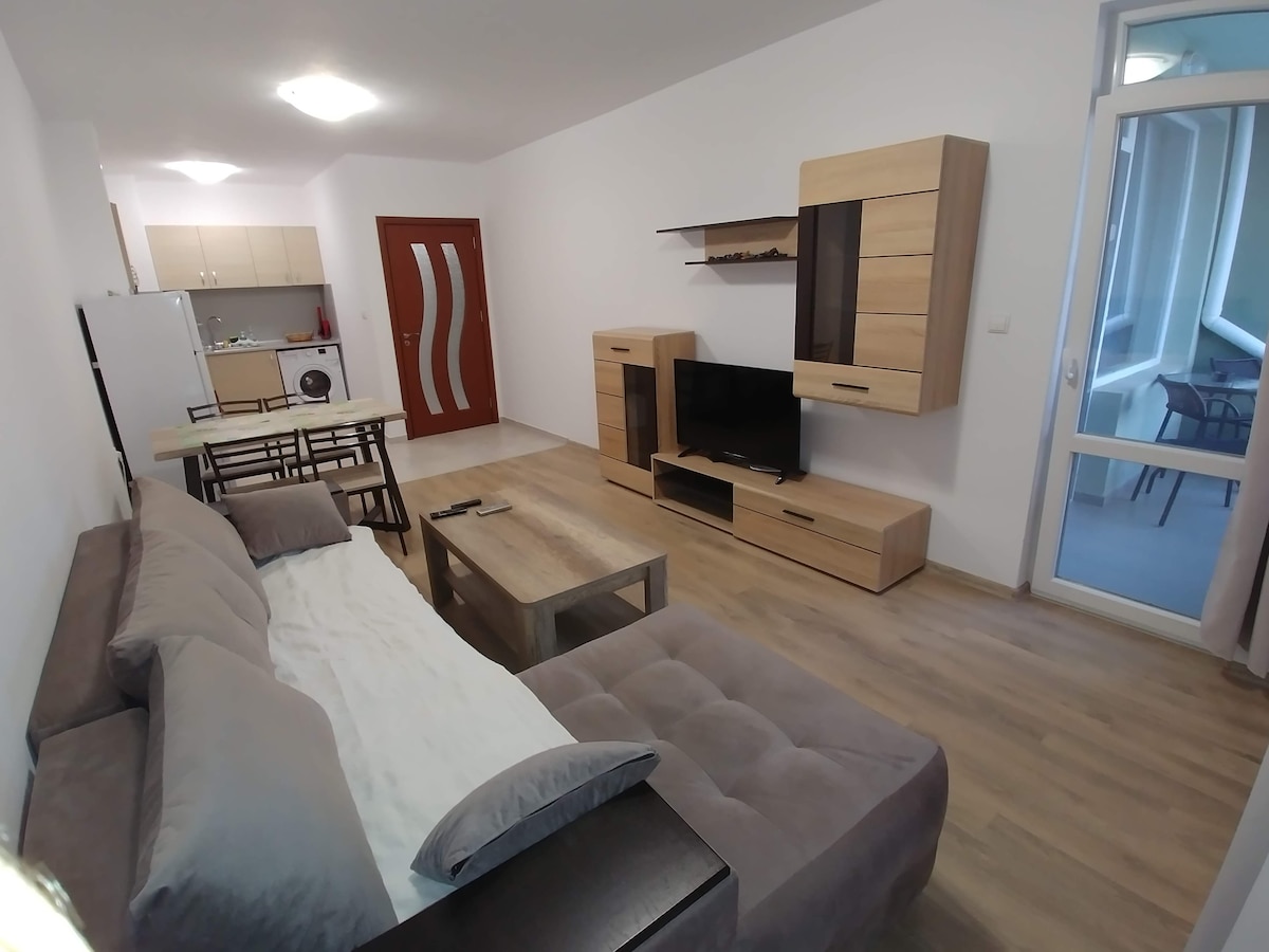 Koselig og lys leilighet i en rolig og fredelig gate. Den har stue,kjøkken, spiseområde,sovesofa,soverom,bad med toalett og terrasse. Leiligheten har egen inngang. Røyking er ikke tillatt i den! Leiligheten ligger 7 km fra Centar.plage og 9 km fra Kraimorie-stranden. Burgas lufthavn ligger 17 km unna. I nærheten er de raske linjene med kollektivtransport,butikker og etablissementer. Len deg tilbake og slapp av på dette fredelige stedet for både en lengre ferie og et kort tilfluktssted