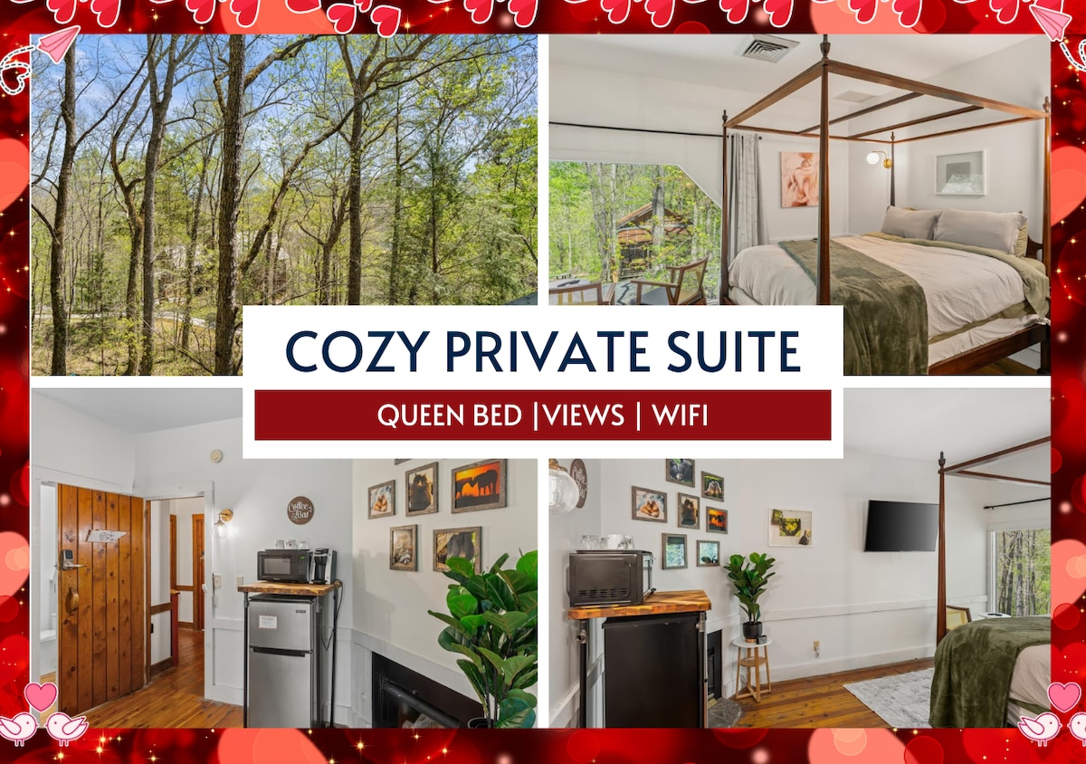 ★ "Twilight Ridge var det mest fredelige stedet jeg har bodd. Vi så på stjernene gjennom takvinduene og drakk kaffe på balkongen - det var perfekt." ★ Twilight Ridge er din personlige lomme av fred i Smoky Mountains. Denne romslige suiten blander fjellcharme med moderne komfort – takvinduer over sengen, en koselig sofa og en privat balkong med utsikt over skogen – pluss gratis frokost hver morgen.