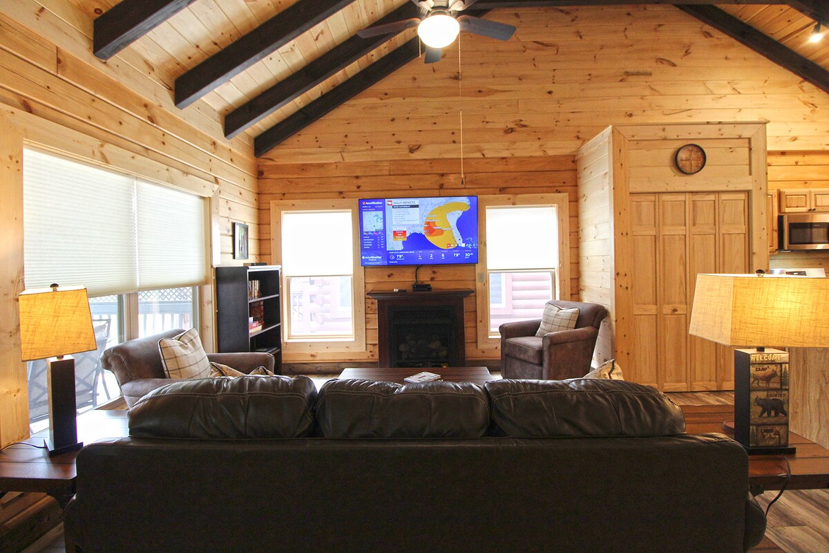 Big Sky Lodge ligger på 3,3 hektar med 360 graders utsikt over fjellene og skogen. Det er en helt ny bygning med mange stille steder å slappe av. Vi har vært oppmerksomme på designdetaljer med myke senger, dobbel ovn, eksklusiv peis, tilpassede skap, stor terrasse, stemplede terrasser og bålpanne. Kjøkkenet er fullt av fine gryter og panner og keramiske bakeformer. Hvert soverom har en TV, og det har begge stuer også. Toppen av eiendommen anses lokalt som en av de beste utsiktene i Townsend.