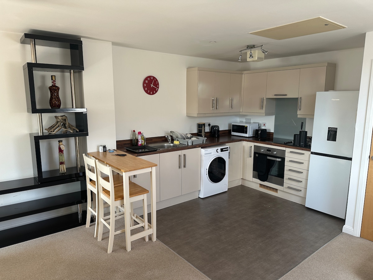 Hele enheten. Dobbeltseng (4 fot 6 tommer x 6 fot 3 tommer) og en enkeltseng i sovesofa. Enkeltrom med en komfortabel enkeltseng. Separat kjøkken og bad, badekar og dusj. Smart-TV, gratis trådløst nettverk, Netflix osv. Har plass til fire personer og en reiseseng (på forespørsel). Fem minutters gange til byen, to minutter til stranden, nær New Swansea Arena og mange andre fasiliteter. Seascape har også en tilknyttet garasje med mulighet til å huse motorsykkel, sykler, vannsportutstyr osv. Be om mer informasjon.