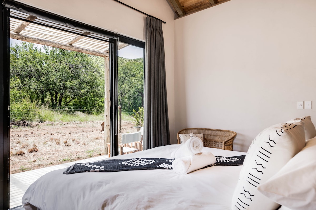 Matopos er en rustikk hytte i stein og tre som ligger i en vill syringa-skog i Grootfontein Private Reserve. Ideell for en ferie for et par eller små familier. Omgitt av natur og utsikt over fjellet, er det et rolig sted å roe ned og finne seg til rette. Hytta har to soverom med eget bad, en enkel kjøkkenkrok, en komfortabel stue og grillfasiliteter. Utendørs kan du slappe av i den vedfyrte boblebadet og nyte stillheten i den omkringliggende bushen.