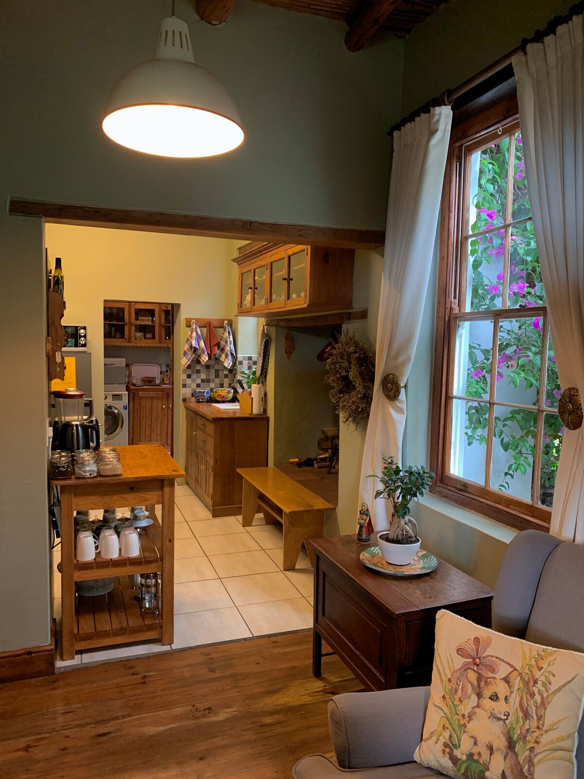 En familievennlig hybel ved siden av elven i et av Swellendams boligområder. Studioleiligheten har en fantastisk utsikt over hagen og et enormt gummitre, noe som skaper en rolig opplevelse. Du har trådløst nettverk med høy hastighet og solenergi, perfekt for fjernarbeid. Vil du ha en følelse av å ikke være i byen? Da er dette stedet for deg. Studioet ligger bare fem minutters gange til nærmeste supermarked/sentrum og 13 minutters gange til gamlebyen med sjarmerende restauranter, butikker og kafeer.